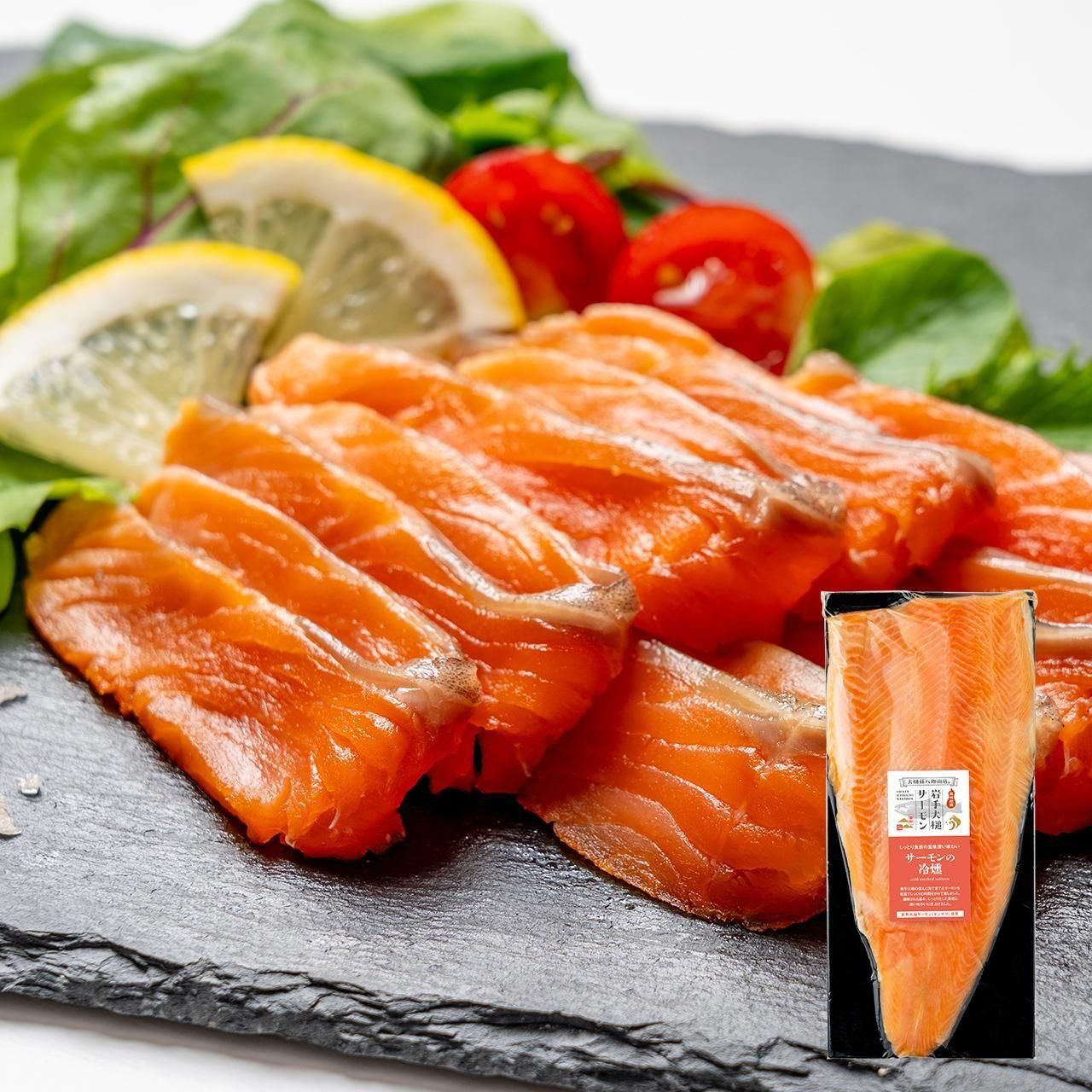 サーモンの半身カットで、たっぷりと贅沢に味わえるサイズです。