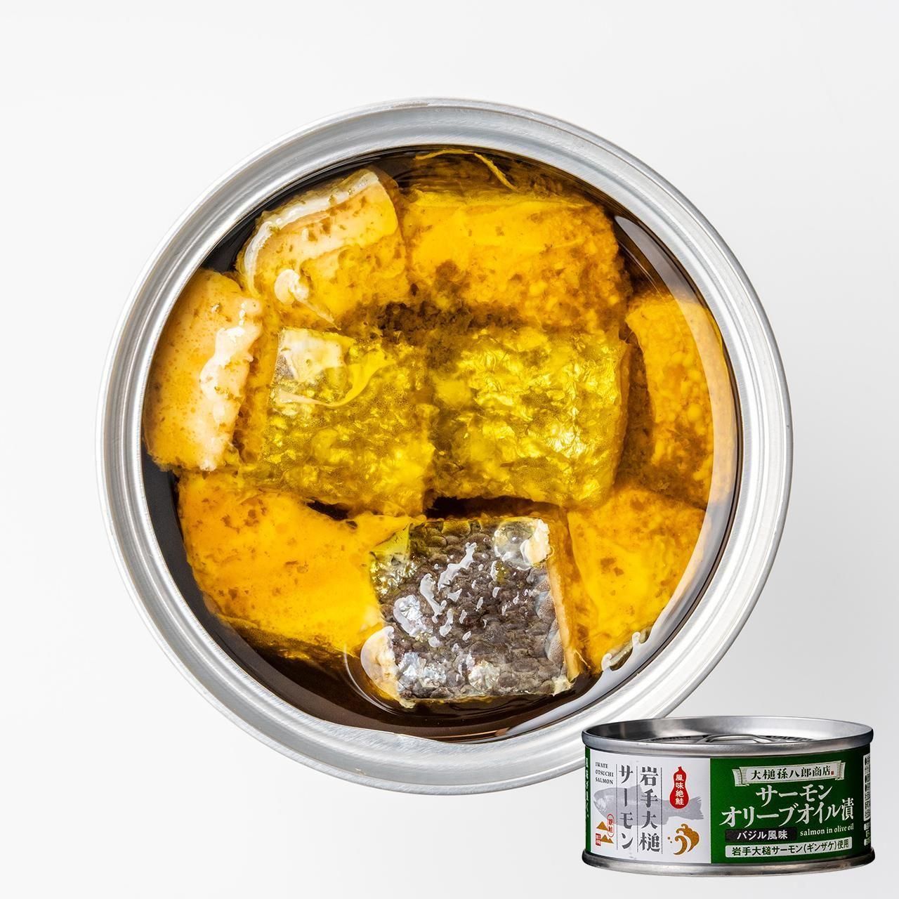 ●サーモンオリーブオイル漬[バジル風味]/岩手大槌サーモン(ギンザケ)使用(95g)─1缶