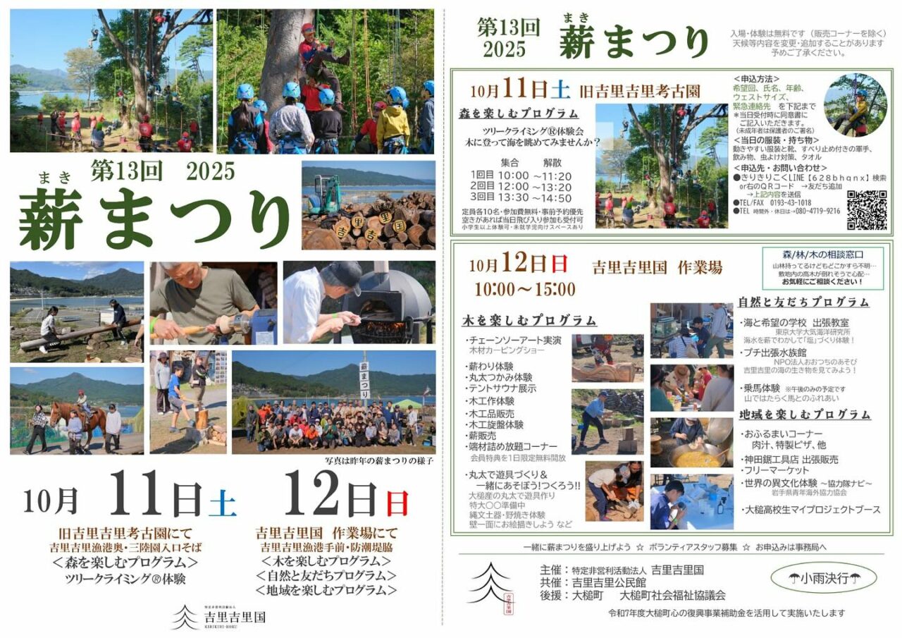 そして同日から2日間、10月11日(金)~12日(土)は「第13回 薪(まき)まつり」も開催されます!