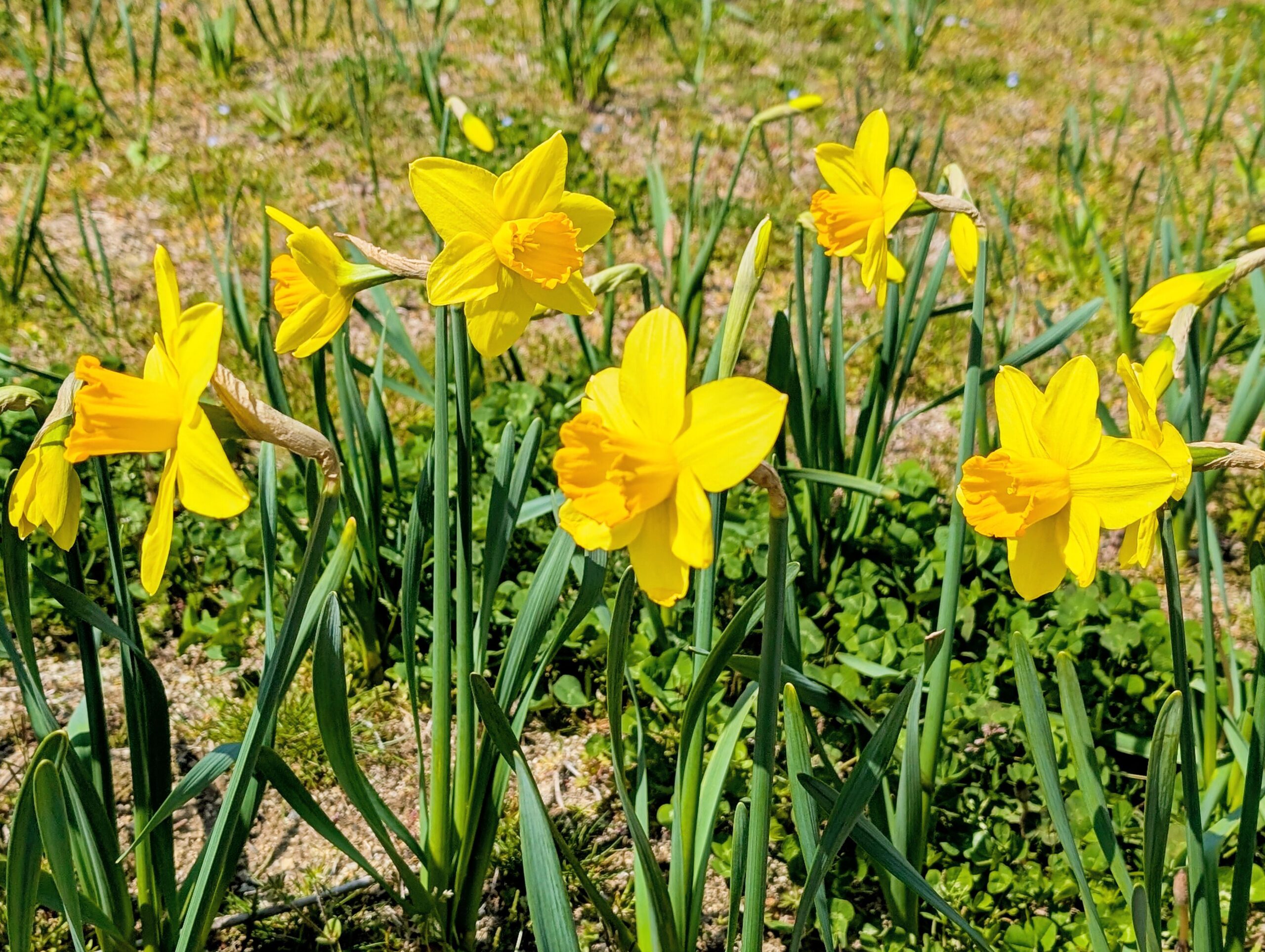 今日は、立ち寄った大槌駅前で、思わず足を止めてしまいました。花壇にはすいせんが見事に咲きそろい、やさしい黄色が春の光に映えて、とてもきれいで思わず写真を一枚。